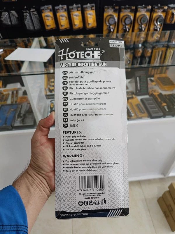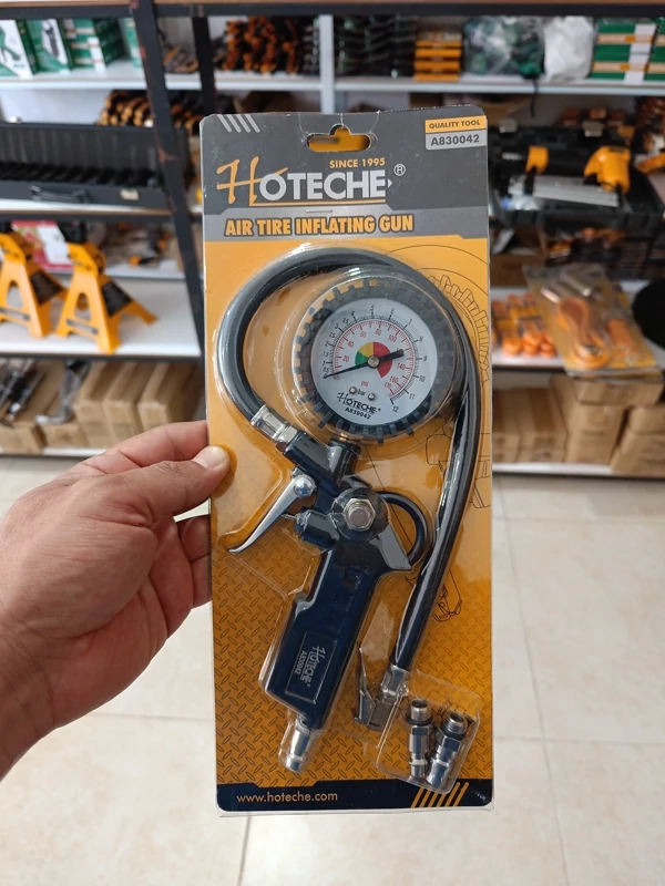 درجه باد کارگاهی عقربه ای - تفنگ باد گیج دار عقربه ای- فشار سنج عقربه ای لاستیک خودرو - برند اصلی Hoteche هوتچ (830042)