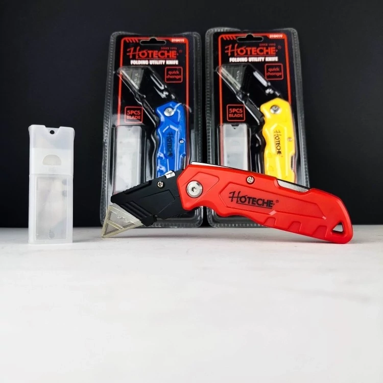 تیزبر و کاتر تاشو چاقویی دسته پلاستیکی همراه 5 عدد تیغ - برند اصلی Hoteche هوتچ (310419)