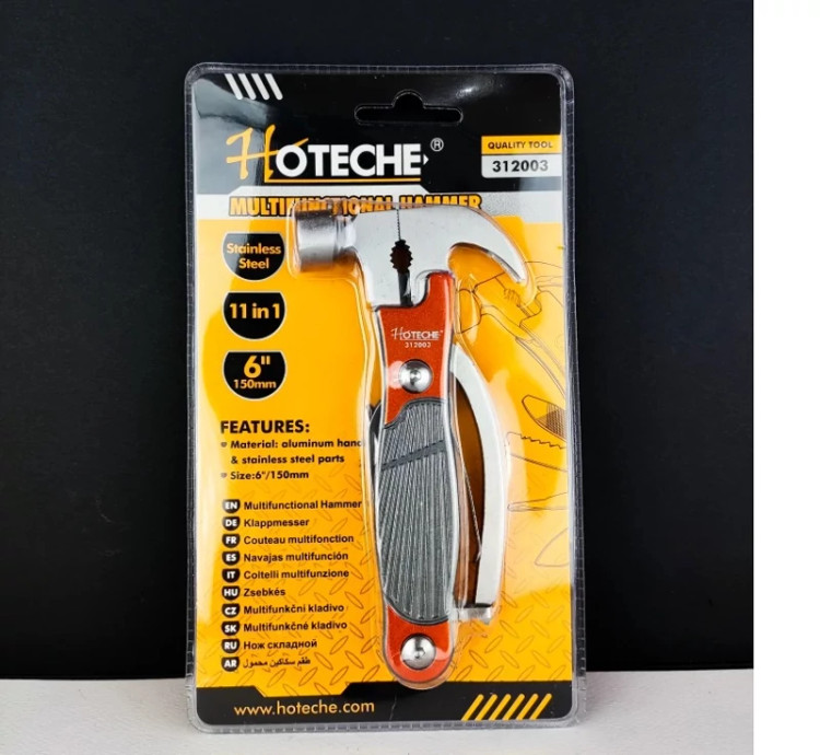 # چکش چند کاره - ابزار همه کاره تاشو - 11 در 1 - 6 اینچ 150 میلی متر - برند اصلی Hoteche هوتچ (312003)