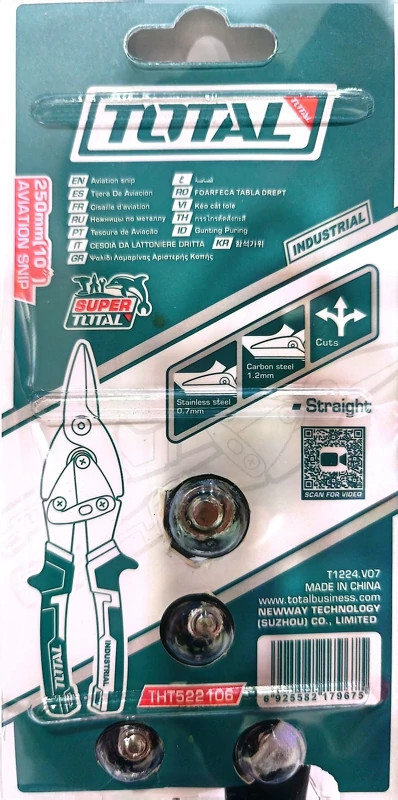 قیچی ورقبر و حلبی بر و کناف کاری TOTAL مدل THT522106 یک ابزار فوقحرفهای برای برش ورقهای فلزی، حلبی و پروفیلهای سبک کناف است. این مدل برای برش مستقیم طراحی شده و با تیغههای مقاوم، برش تمیز و دقیق ارائه میدهد.